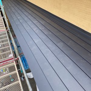 H店舗 屋根張替店舗の屋根張替工事、波板からガルバリウム鋼板に張替