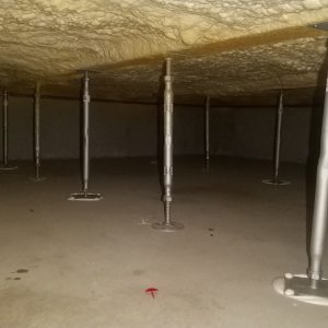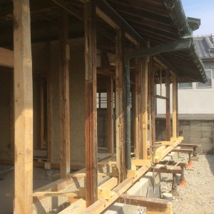 M邸 地盤補強家が沈んでいたので、ジャッキで家を持ち上げ、基礎に補強筋をコンクリートを打設。