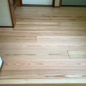 F邸 杉フローリング張り既存床に上張りで杉フローリングを施工。