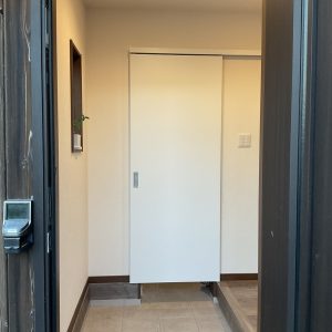 H邸 建具取付けシューズクロークに扉が欲しいと連絡があり、上吊りのアウトセット建具を取付け。