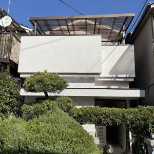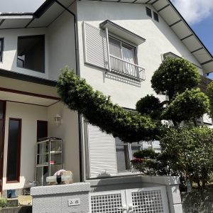 H邸 外壁塗装築40年の住宅の外壁塗装。微弾性フィーラー平滑塗りの上、DANシリコンセラRなみがた模様仕上げ。