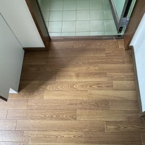 O邸 床補修お風呂前の床が痛んでいるので下地を入替え構造用合板を上張り後、クッションフロアーを施工。