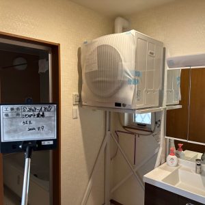 F邸 ガス乾燥機設置洗面所の洗濯機上にガス乾燥機設置。