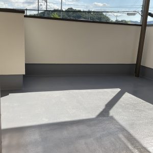 H邸 ベランダ工事新しくネダを組み、その上に24ミリ合板を引き詰め、防水塗装。