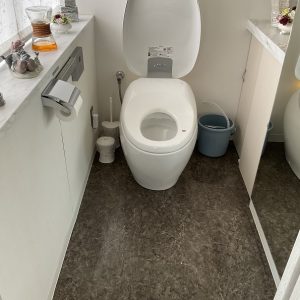 H店舗 トイレ増設もともと設置してあった仮設トイレを撤去後、新規のトイレスペースを増設。
