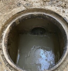 S邸 排水升補修排水升の底や側面が割れて水が流れでているので、モルタルで補修。