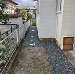 S邸 砂利施工雑草が生えてこないよう砂利を設置。
