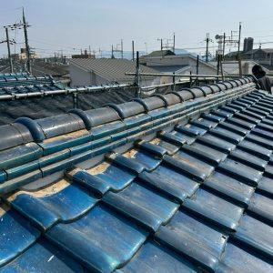 D邸 屋根瓦補修瓦の固定に使われていた土が長年時間を掛けて少なくなり瓦がズレてきたので補修工事。