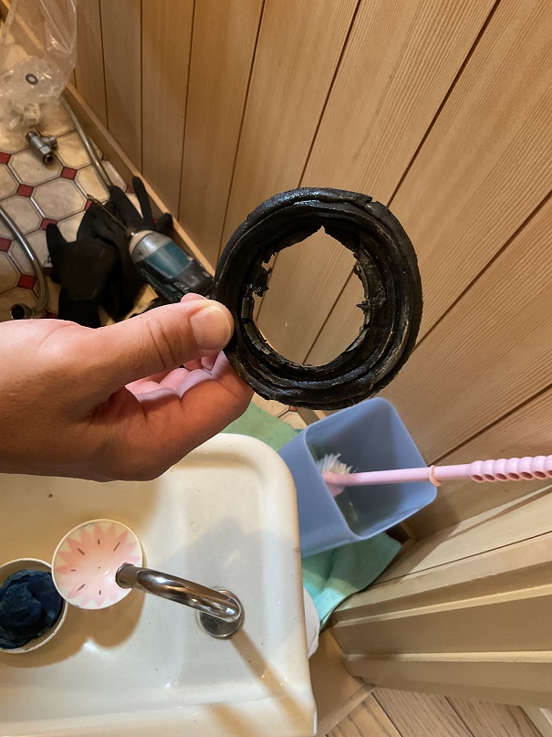 床との間にあるパッキンがの劣化による水漏れが発生、パッキン入替えて水漏れはなくなりました。