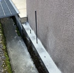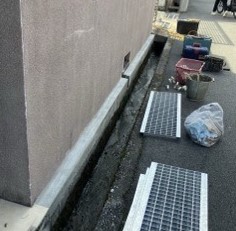 家の前に溝が危ないので、道と高さをそろえグレーチングを設置。
