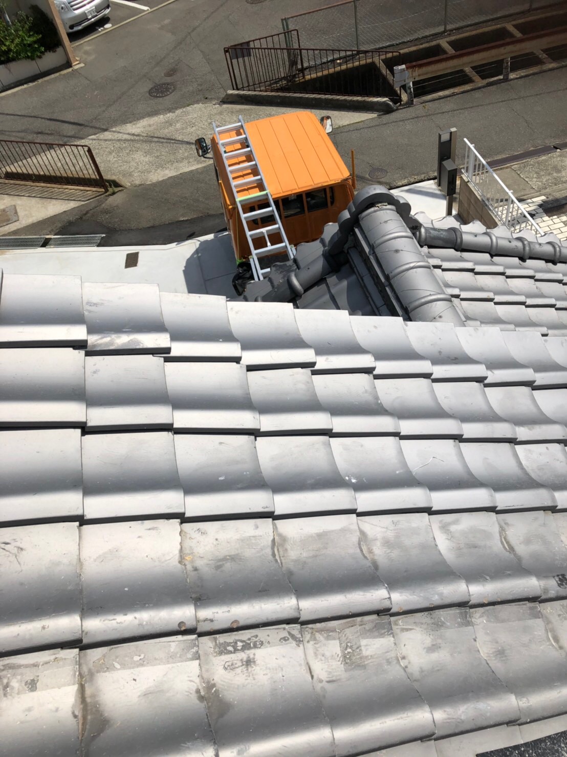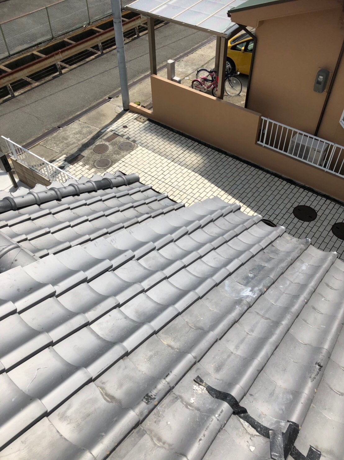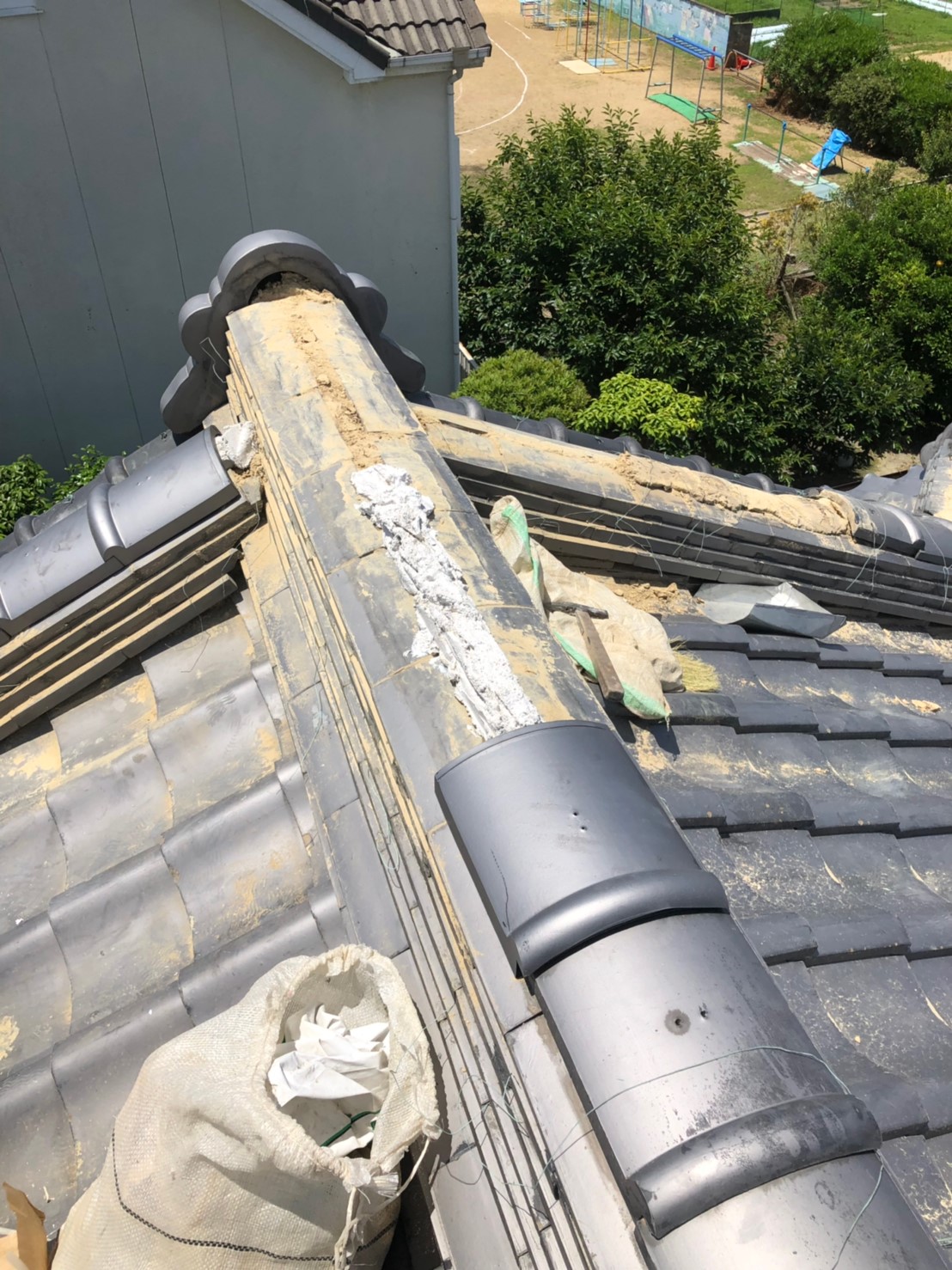 強風で瓦が飛んだ所を補修。